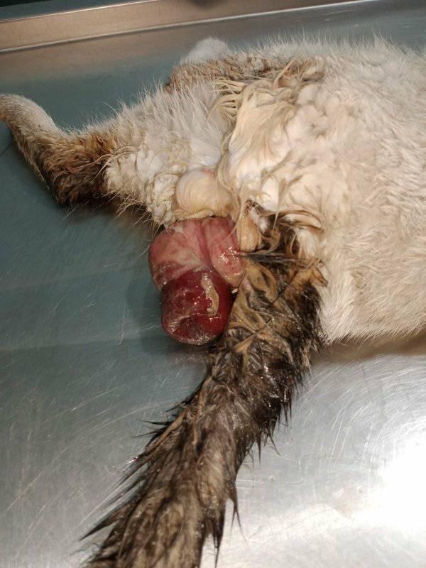 In the middle of the night, our shelter phone rang. One of our members was on the phone and she was saying that she found a cat on the street but the cat’s bowel was out and bleeding. We told our member to take the cat to our vet. There was no time to waste because it seems the cat has internal bleeding.