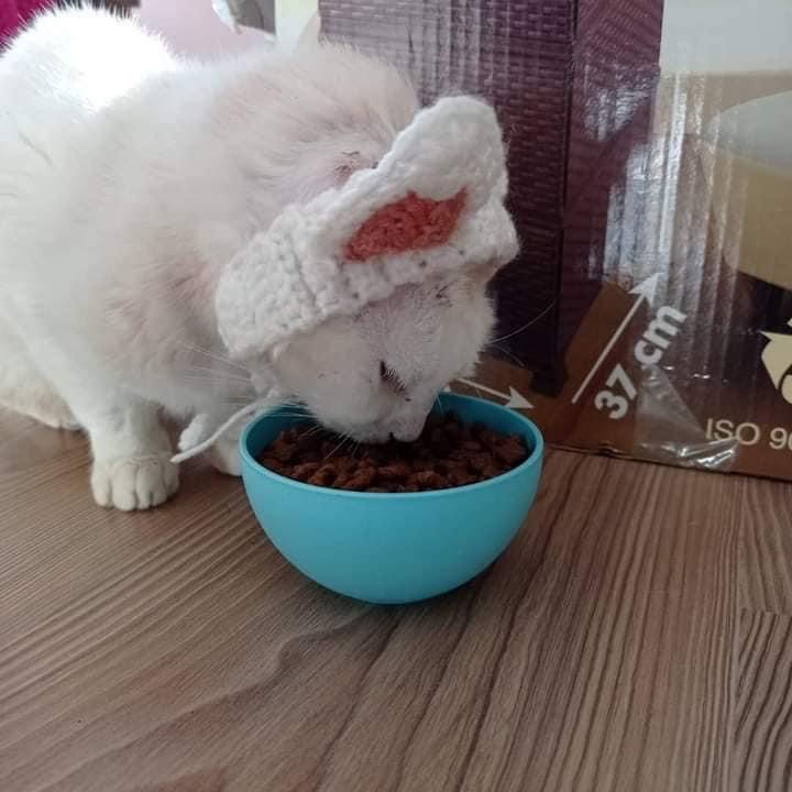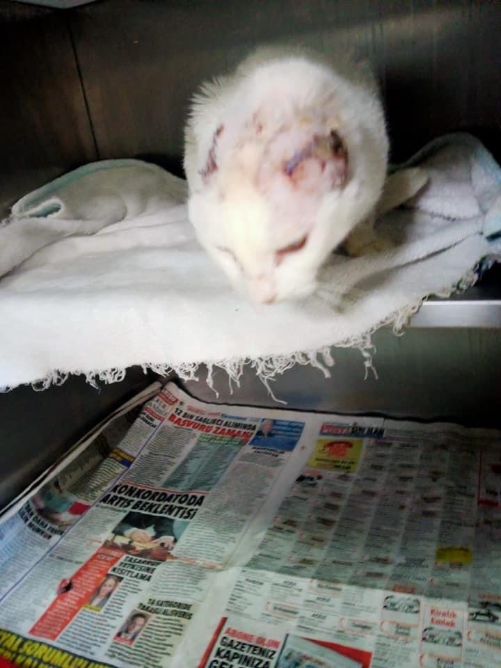 We found an abandoned cat with his ears cut off behind a car. We took her to the vet. She was in urgent need of love and extra care.