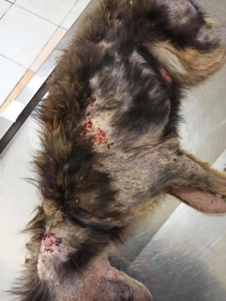 At one point it got so bad and painful that I was not able to move so I lay down under a tree and waited to die. One of the local shop owners who knew me from before found me and called Rescue Strays Shelter for help. They came and took me to the vet. The vet told me that I had a very slim chance to live. It took 2 months of constant daily care just to get back on my feet. After 4 months, my fur started to grow again and here I am after 8 months of treatment and lots of love.