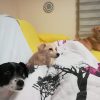 My name is Boncuk. I love to cuddle, kisses with everyone I meet. It wasn’t easy playing in a cage. That’s where they found me. It was an abandoned house, with a lot of trash and no food at all. But Rescue Strays found me and now I get to live in a real house not an abandoned one and I got more than 150 friends here except the 2 legged ones. I got sick with distemper. The illness has passed and I am still a happy pet, but as a result, I have some nerve damage that causes some shaking. I don’t care, people here still love me. Now I am living life, like a queen.